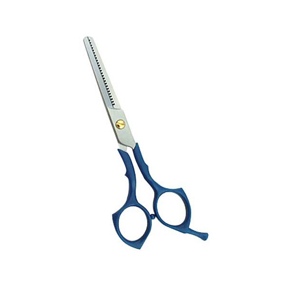 general purpose thinning scissor. with plastic blue handle. sizes: 4.5,5,5,6,6.5